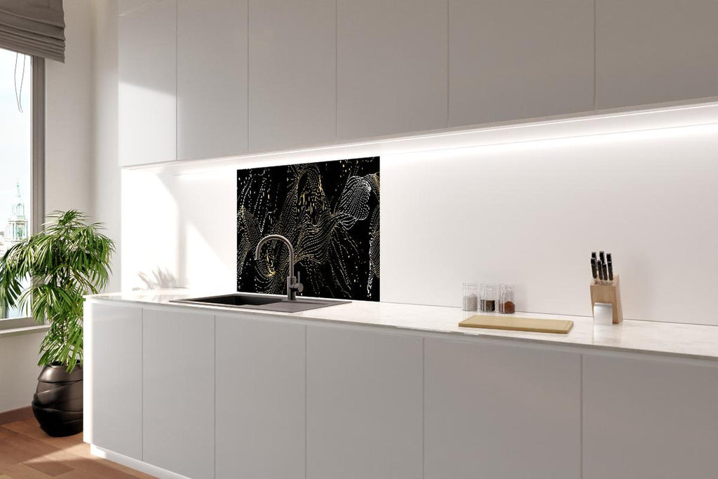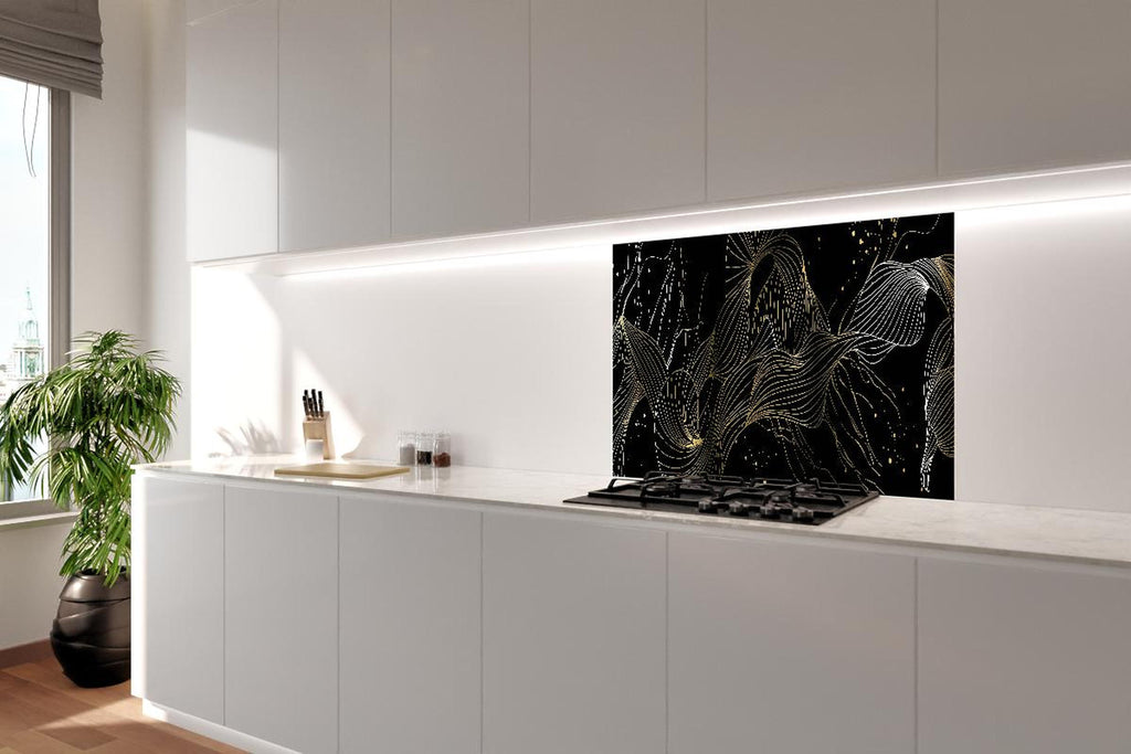 Spritzschutz - Goldene Abstrakte Linien auf Schwarz
