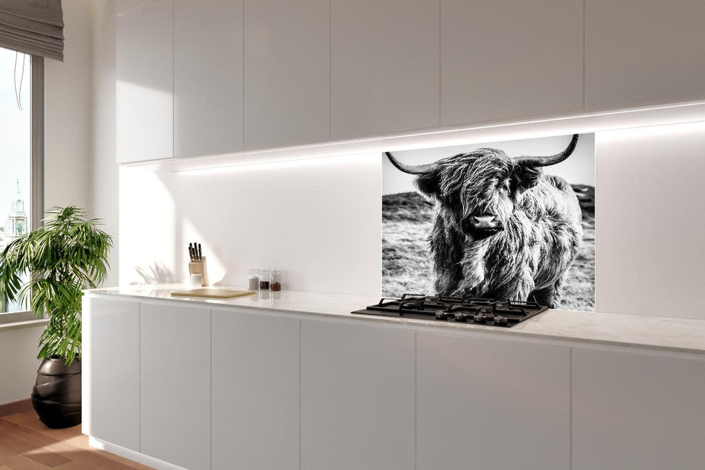 Spritzschutz - Hochlandkuh in Schwarz-weiß