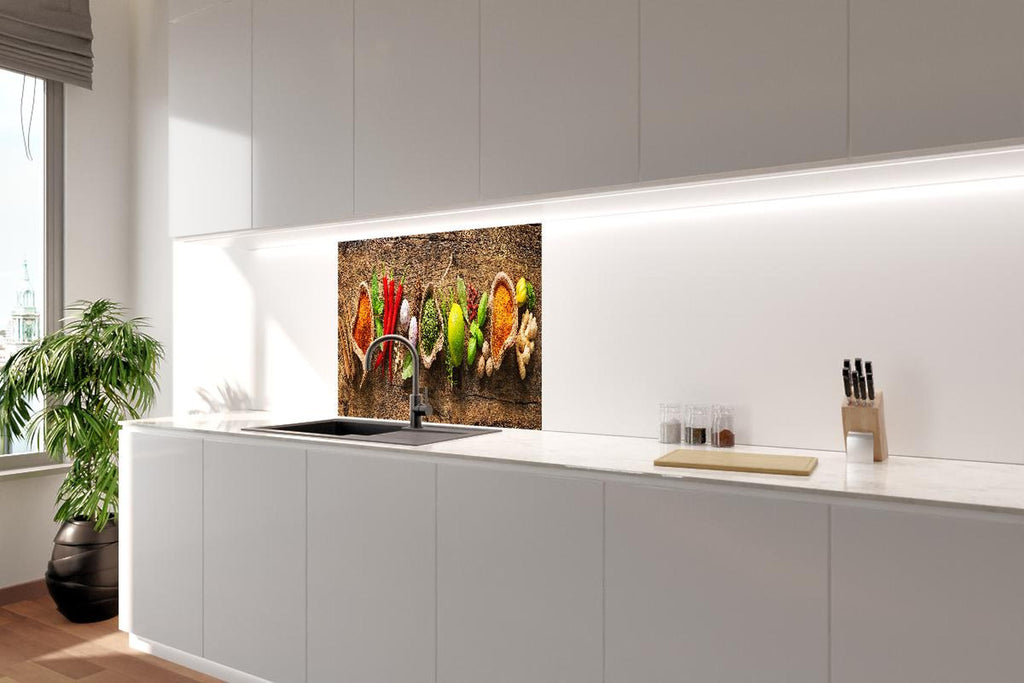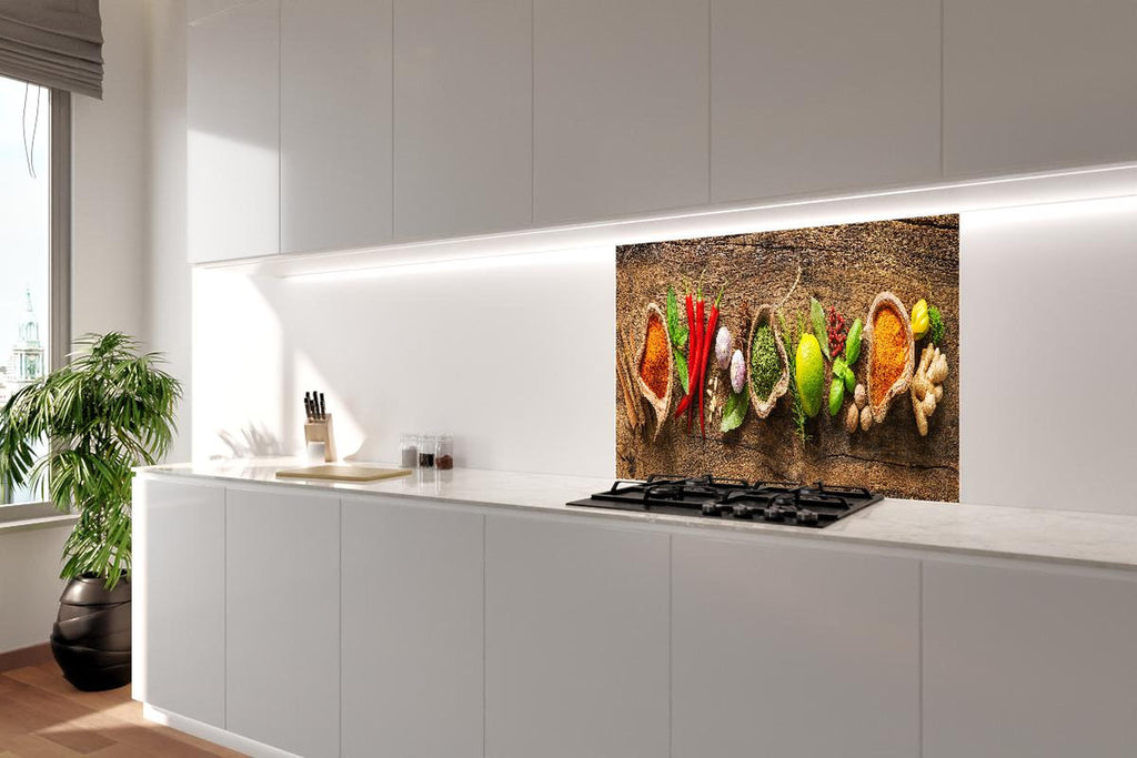 Spritzschutz - Kräuter & Gewürze auf Holz