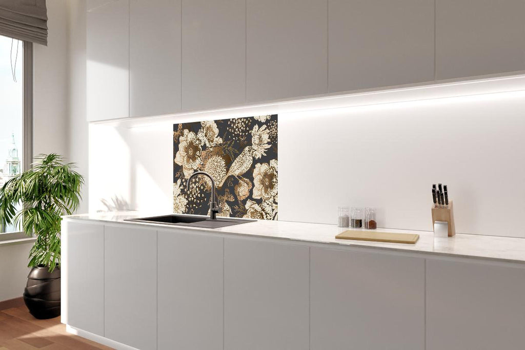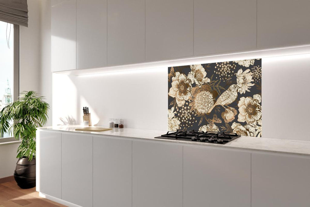 Spritzschutz - Luxuriöses Goldbraun Pfau & Blumen Muster