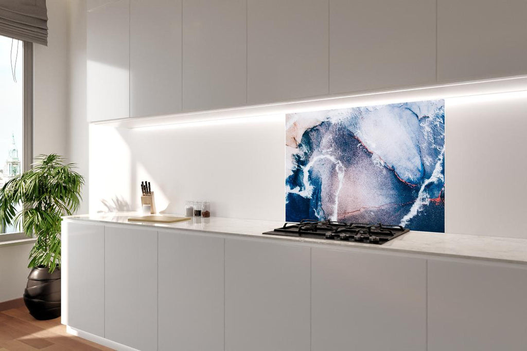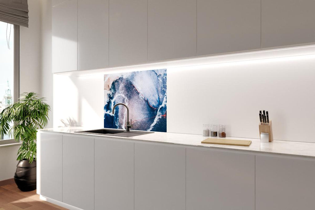 Spritzschutz - Marmor Textur in Blau mit Sandwellen