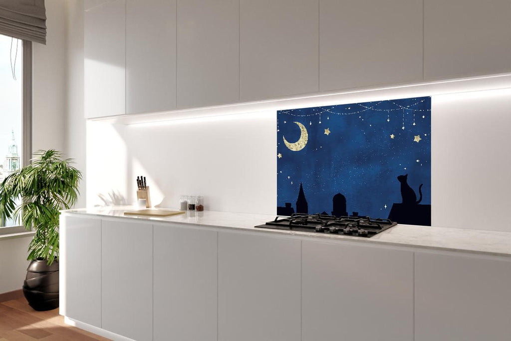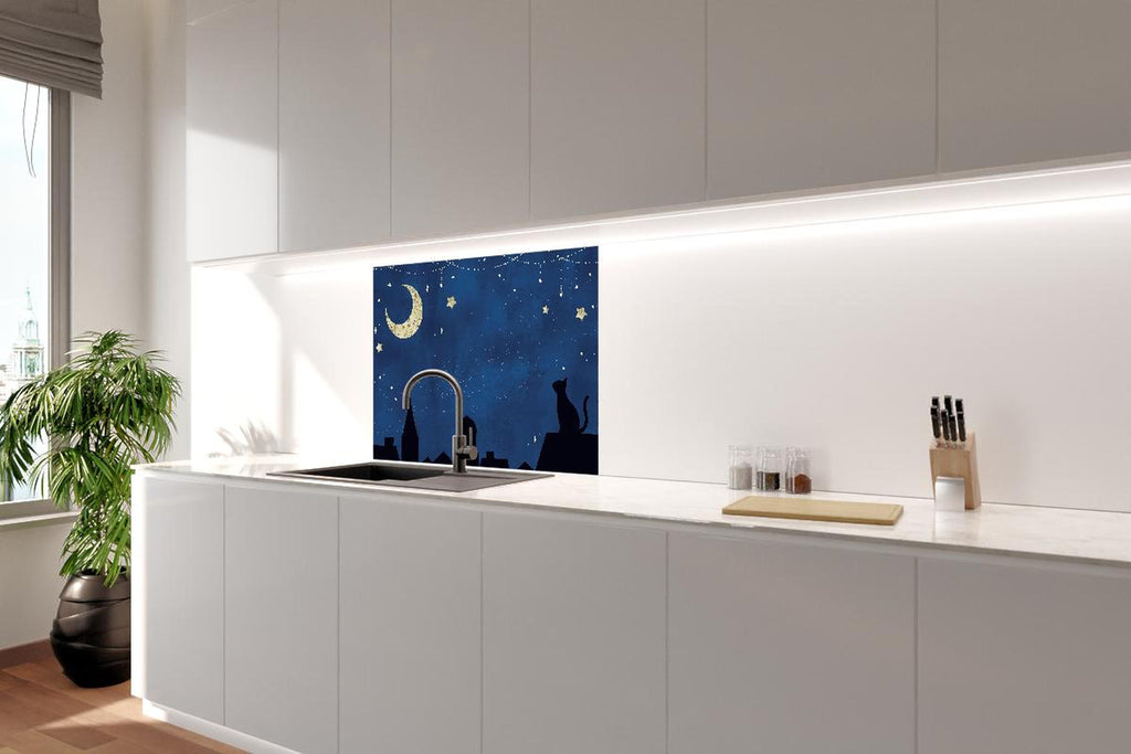 Spritzschutz - Nächtlicher Sternenhimmel mit Katze