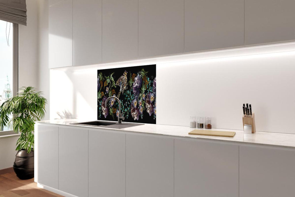 Spritzschutz - Nahtloses Vogel Blumenmuster Stickerei Design