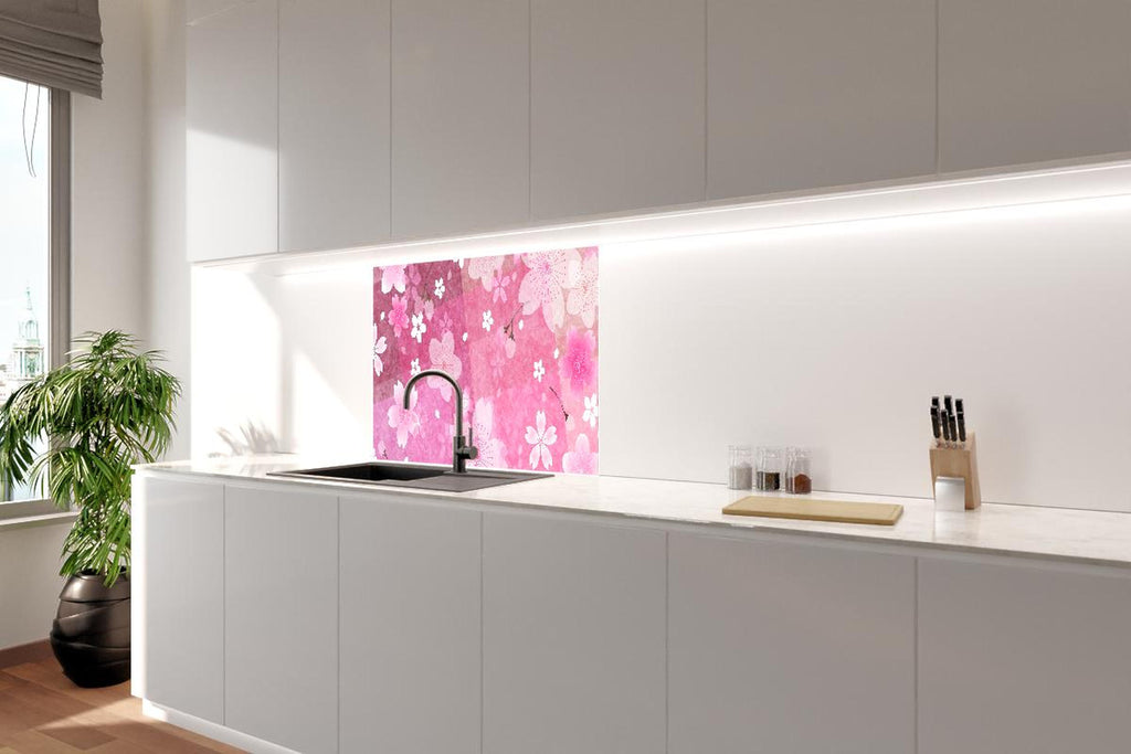 Spritzschutz - Pinkes Blumenmuster Aquarell Illustration