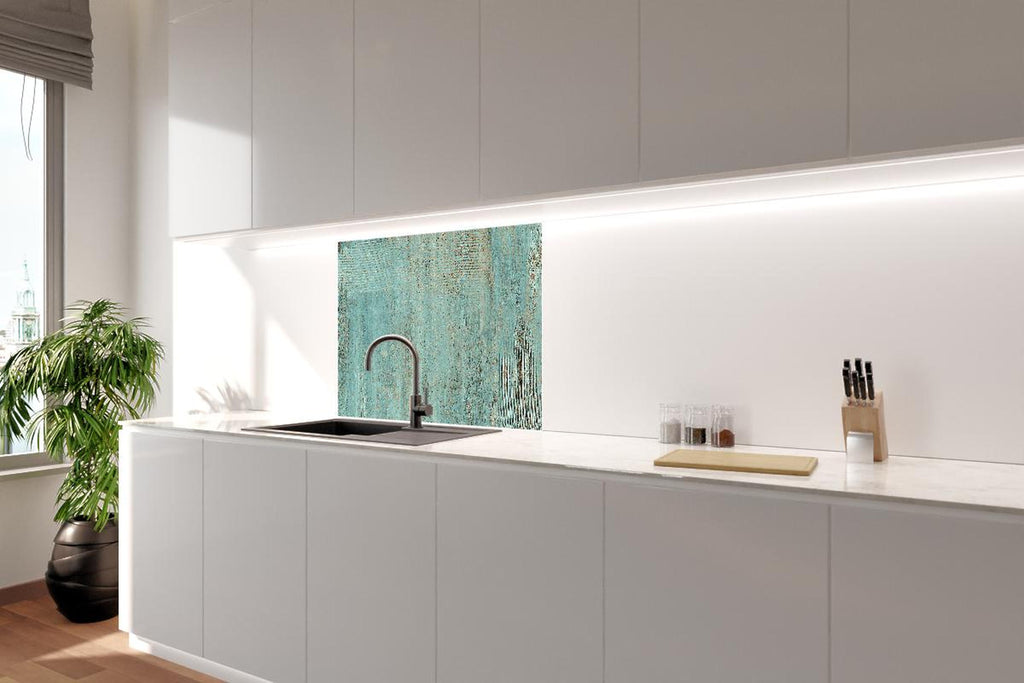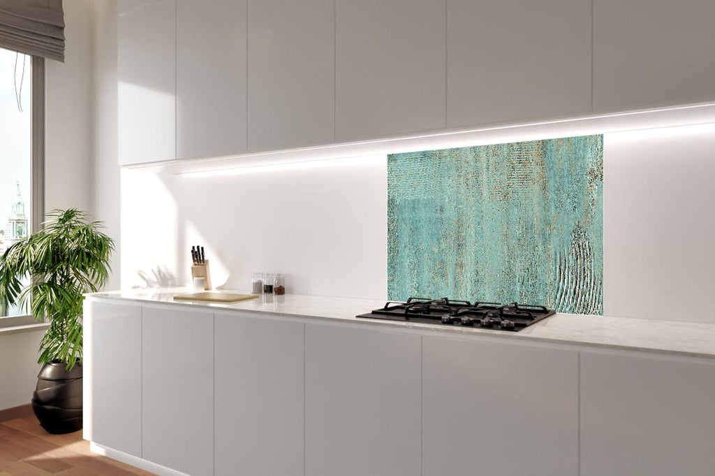 Spritzschutz - Rustikales türkisfarbiges Holz