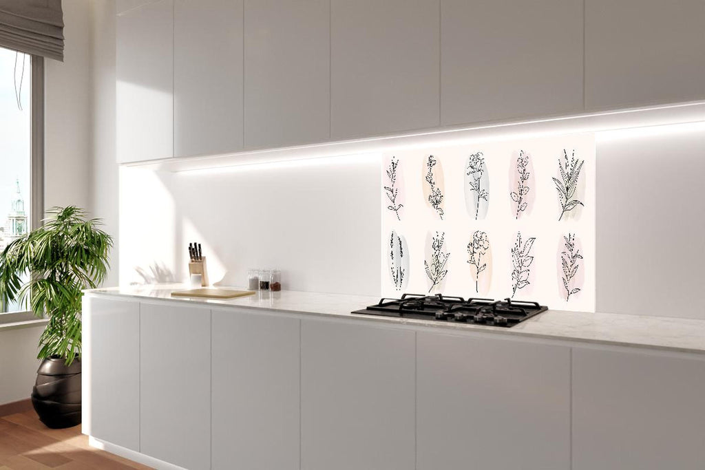 Spritzschutz - Set mit Blumenillustrationen in Pastellfarben