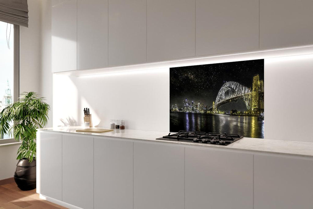 Eine einzelne Küchenrückwand kann maximal 300 cm breit und 150 cm hoch sein. Konfigurationen bis zu diesem Höchstmaß werden in einem Stück produziert und geliefert.