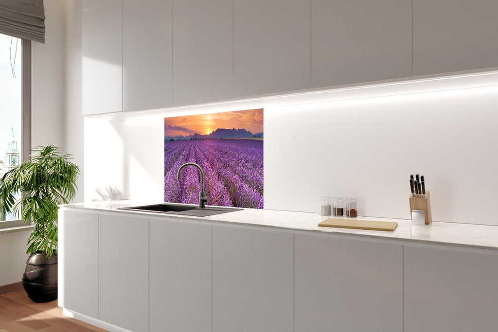 Spritzschutz - Sonnenaufgang über Lavendelfelder - Provence