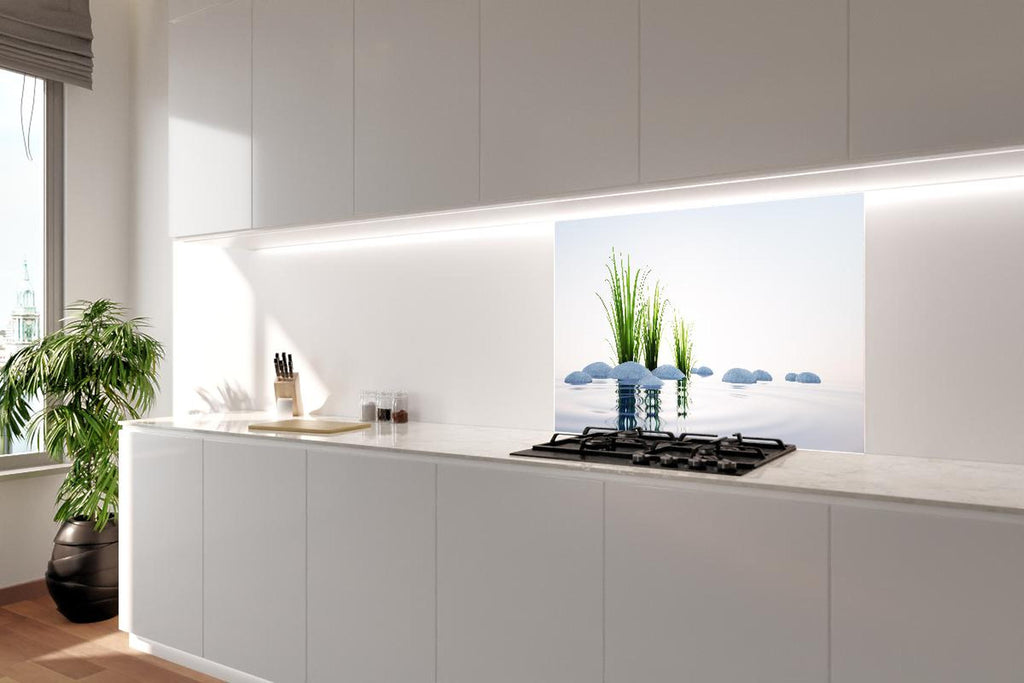 Spritzschutz - Steine und Gras im See Querformat