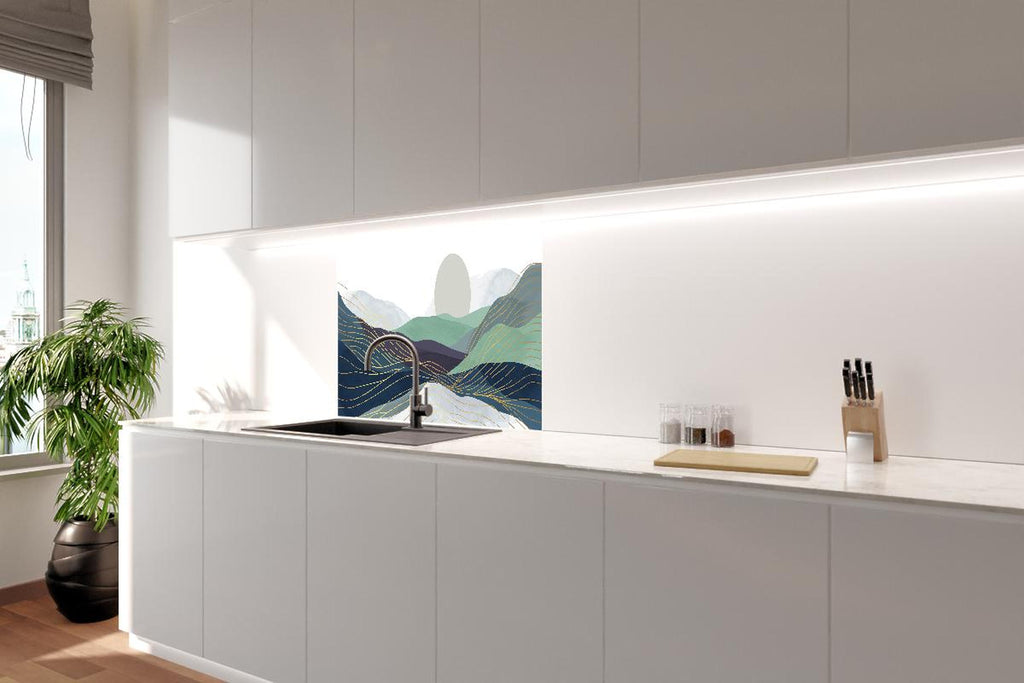 Spritzschutz - Stilisierte Hügel-Landschaft mit Sonne