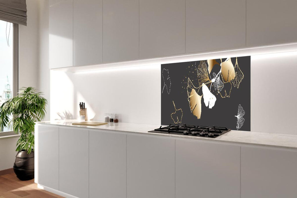 Spritzschutz - Stilisiertes Ginkgo-Design in Gold und Schwarz