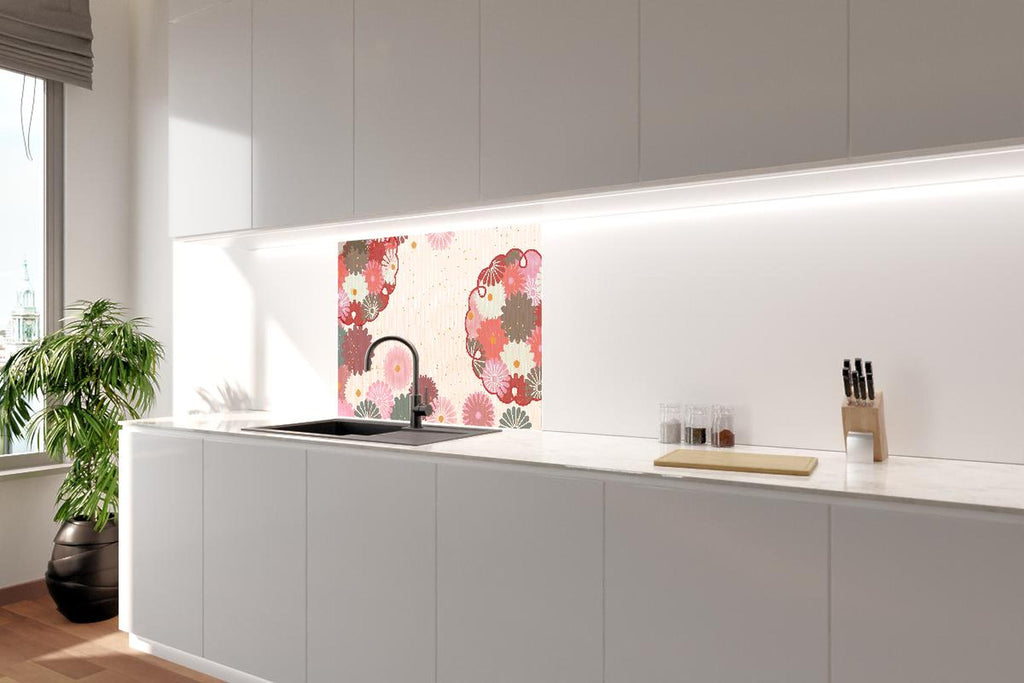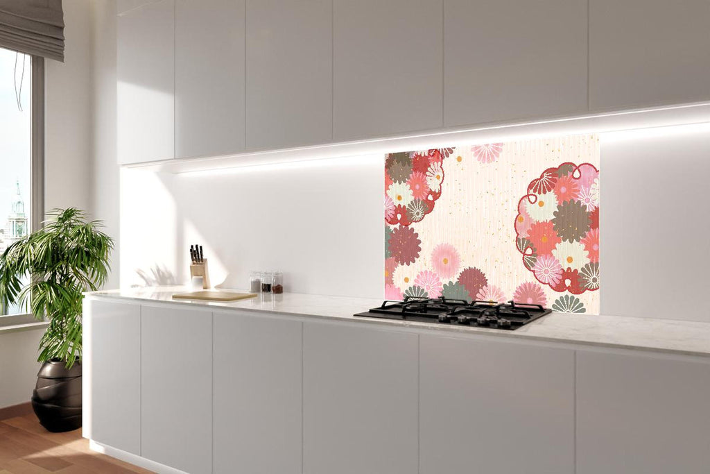 Spritzschutz - Stoffmuster Blumen Beige Rosa Akzente