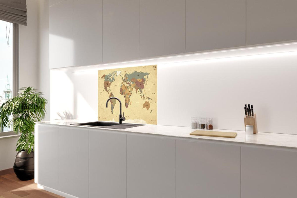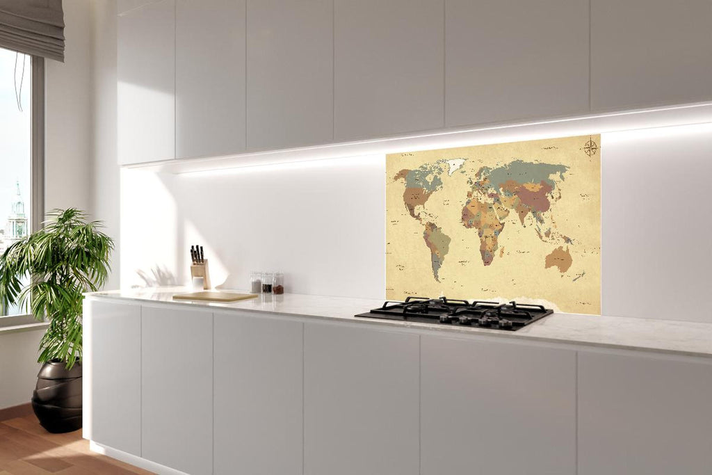 Spritzschutz - Texturierte Vintage Weltkarte in Beigetönen