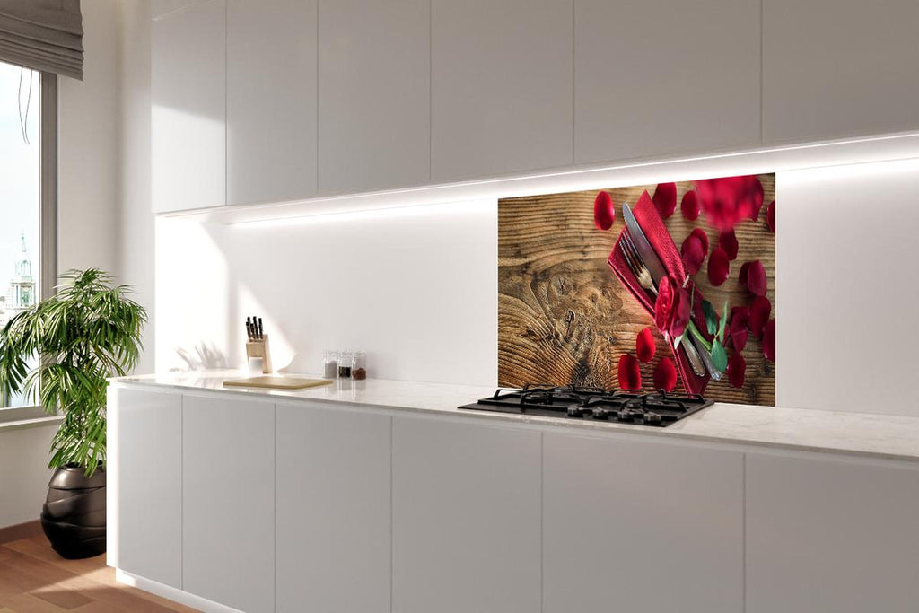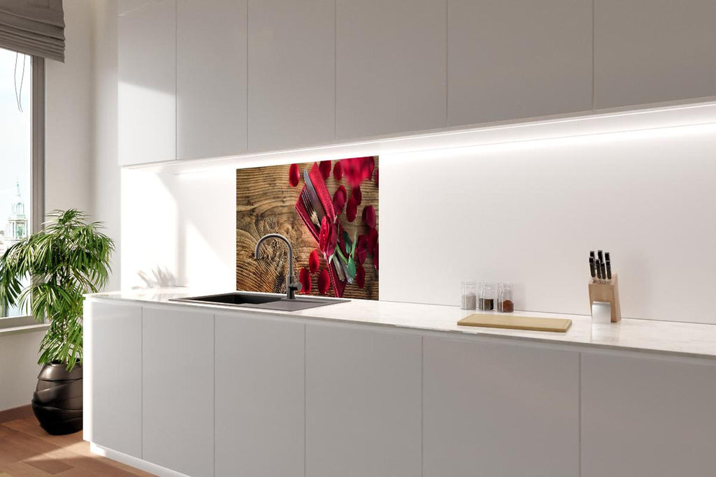 Spritzschutz - Tischdekoration mit roten Rosen