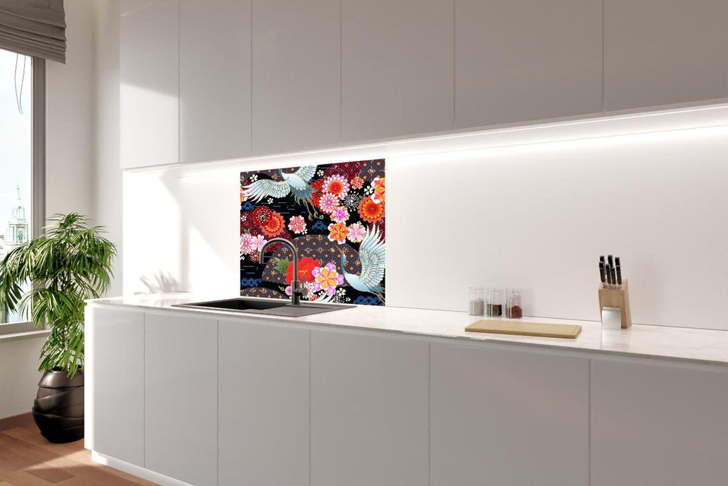 Spritzschutz - Traditionelles Muster mit Vögeln und Blumen