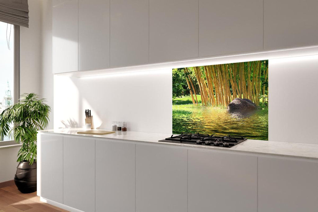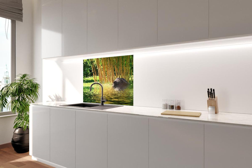 Spritzschutz - Tropischer Bambuswald mit See in Zentralasien