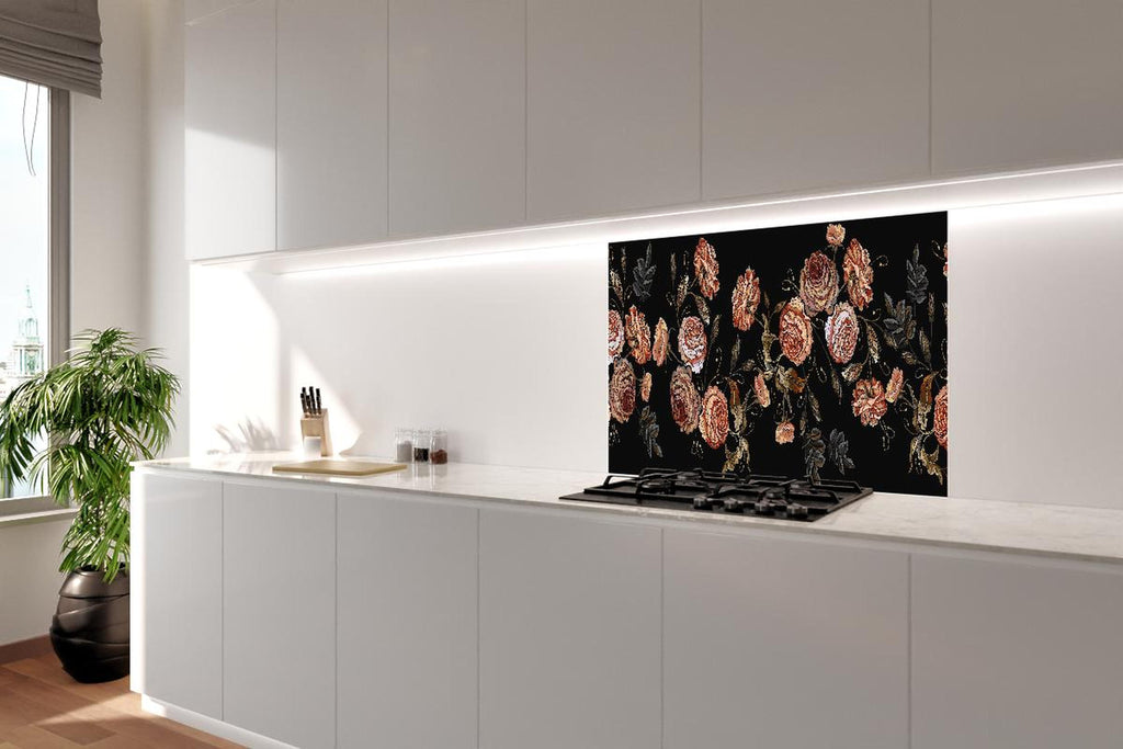 Spritzschutz - Vintage Rosen Stickmuster Renaissance Schwarz