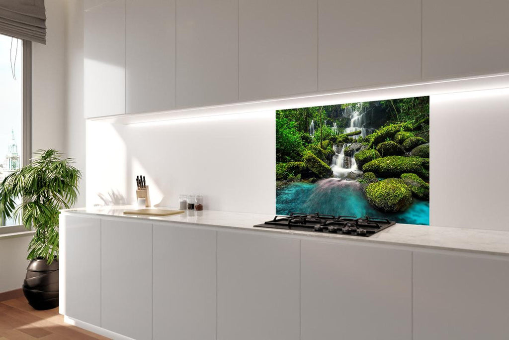 Spritzschutz - Wasserfall im grünen Dschungel von Thailand